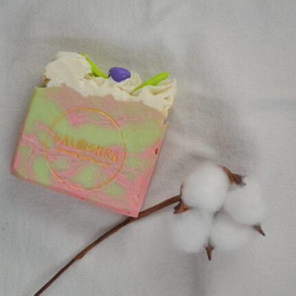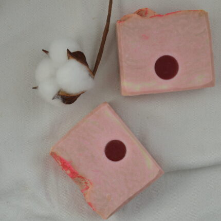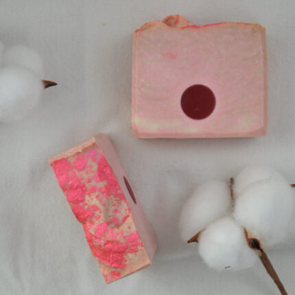 Мыло ручной работы «Бархатная вишня» с раскошным ароматом ванильной темной вишни сварено на основе натуральных растительных масел. Входящие в состав соли молочной и лимонной кислот (лактат и цитрат натрия) придают дополнительные антибактериальные и кондиционирующие свойства.