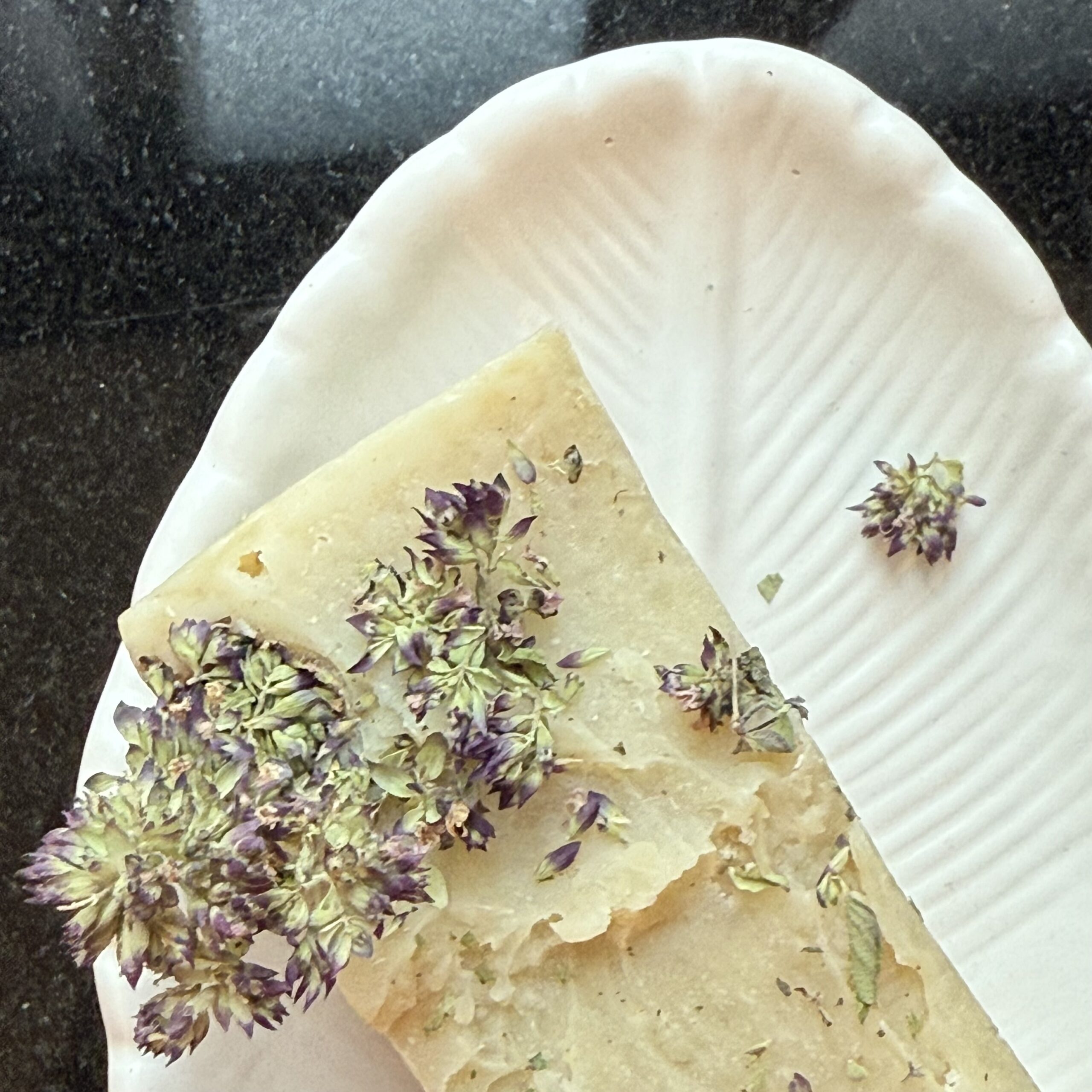 Состав/INCI: омыленное масло пальмы (Palm Oil), омыленное масло оливы (Oliva Oil), омыленное масло кокоса (Coconut Oil), омыленное касторовое масло (Castor Oil), лактат натрия (Sodium Lactate), цитрат натрия (Sodium Citrate), натрия гидроксид (Sodium Hydroxide), сок подорожника, сок репейника, сок крапивы, эфирное масло мяты перечной (Mentha Piperita Oil), эфирное масло мелиссы (Melissa Oill), эфирное масло чайного дерева (Melaleuca Alternifolia Oil), декор (Decor).
