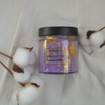 Состав: сахар, масло виноградной косточки, масло Ши, масло кокоса, цетеариловый спирт, эмульгатор Xyliance, композиция эфирных масел лаванды, лимона, лайма и грейпфрута, токоферола ацетат, минеральный пигмент, мика.