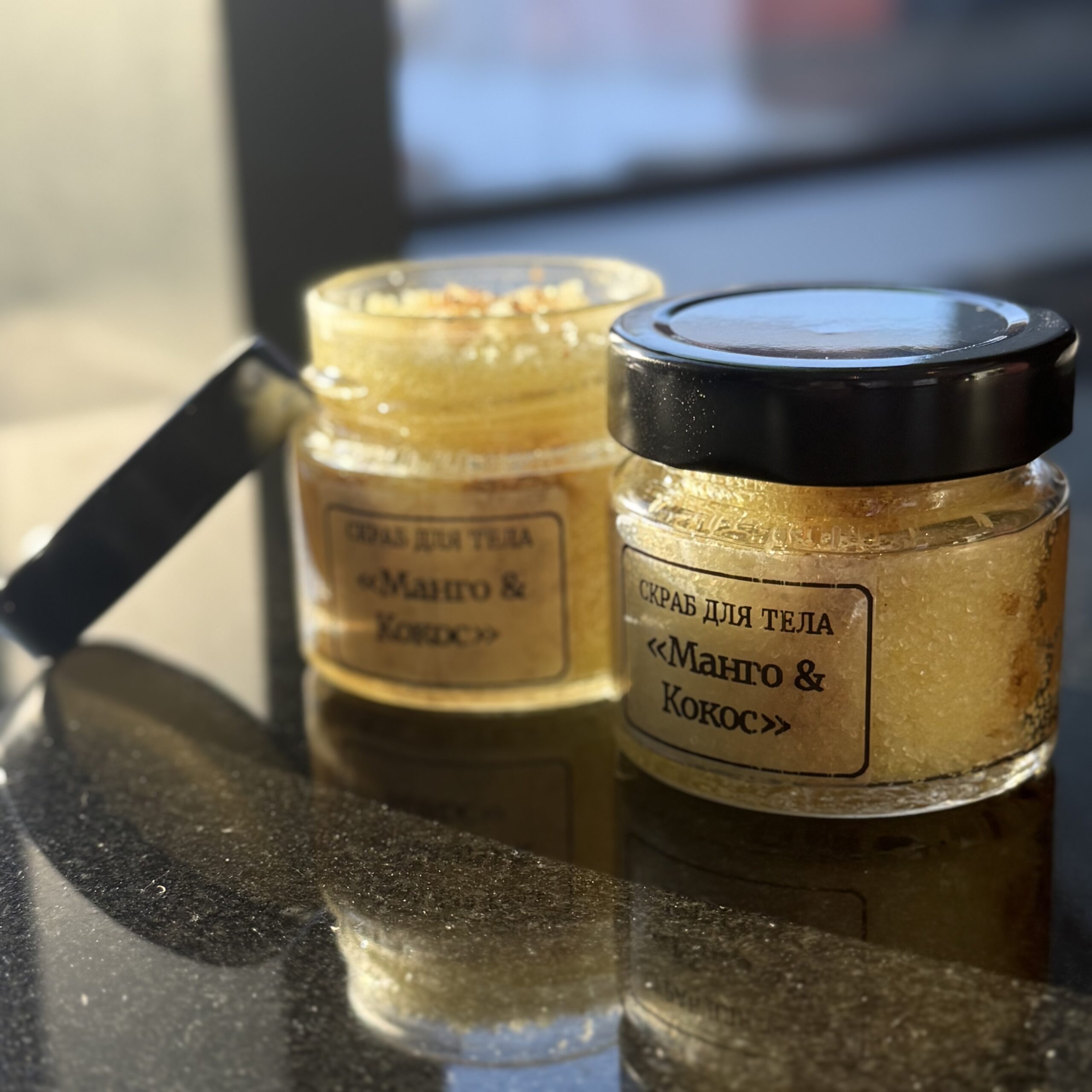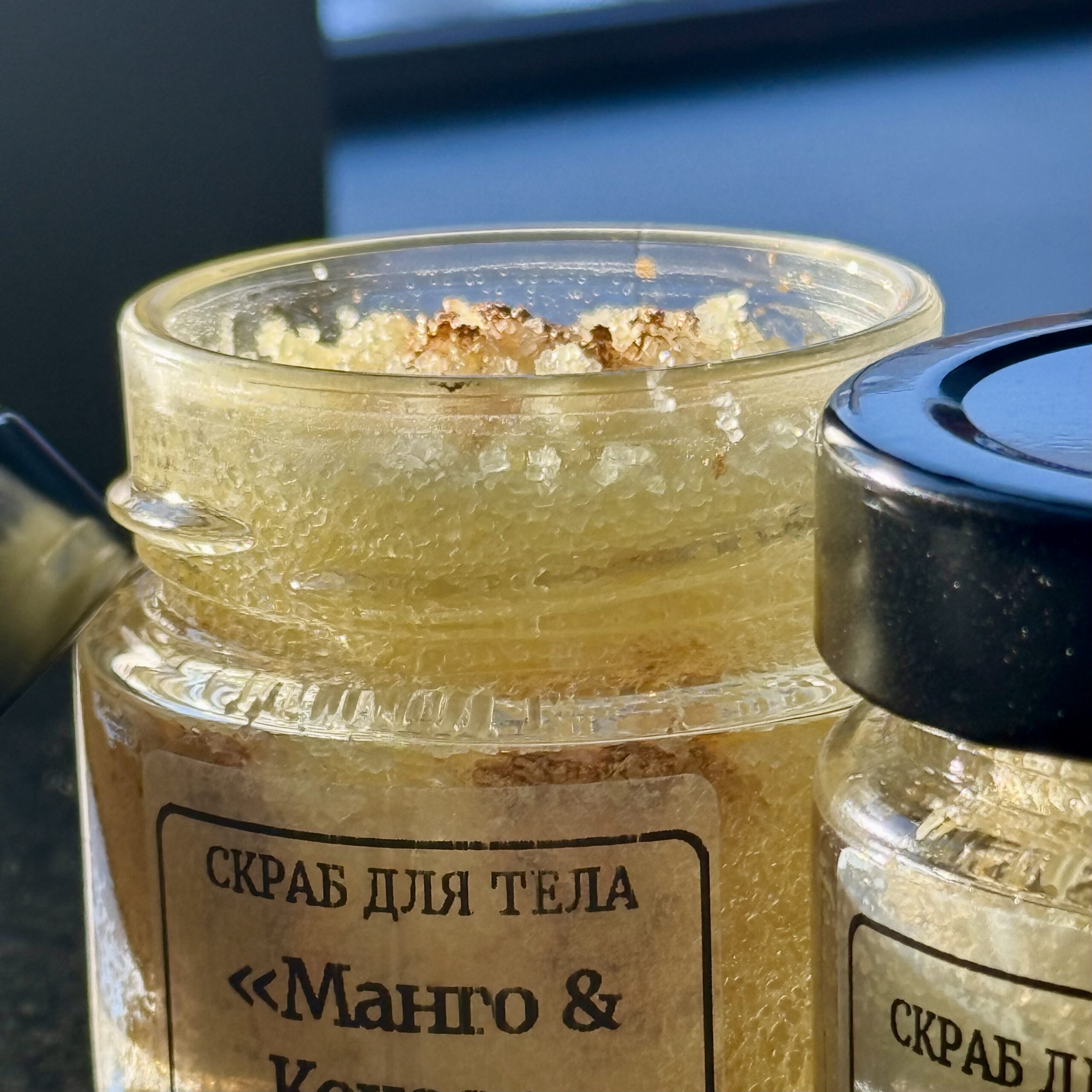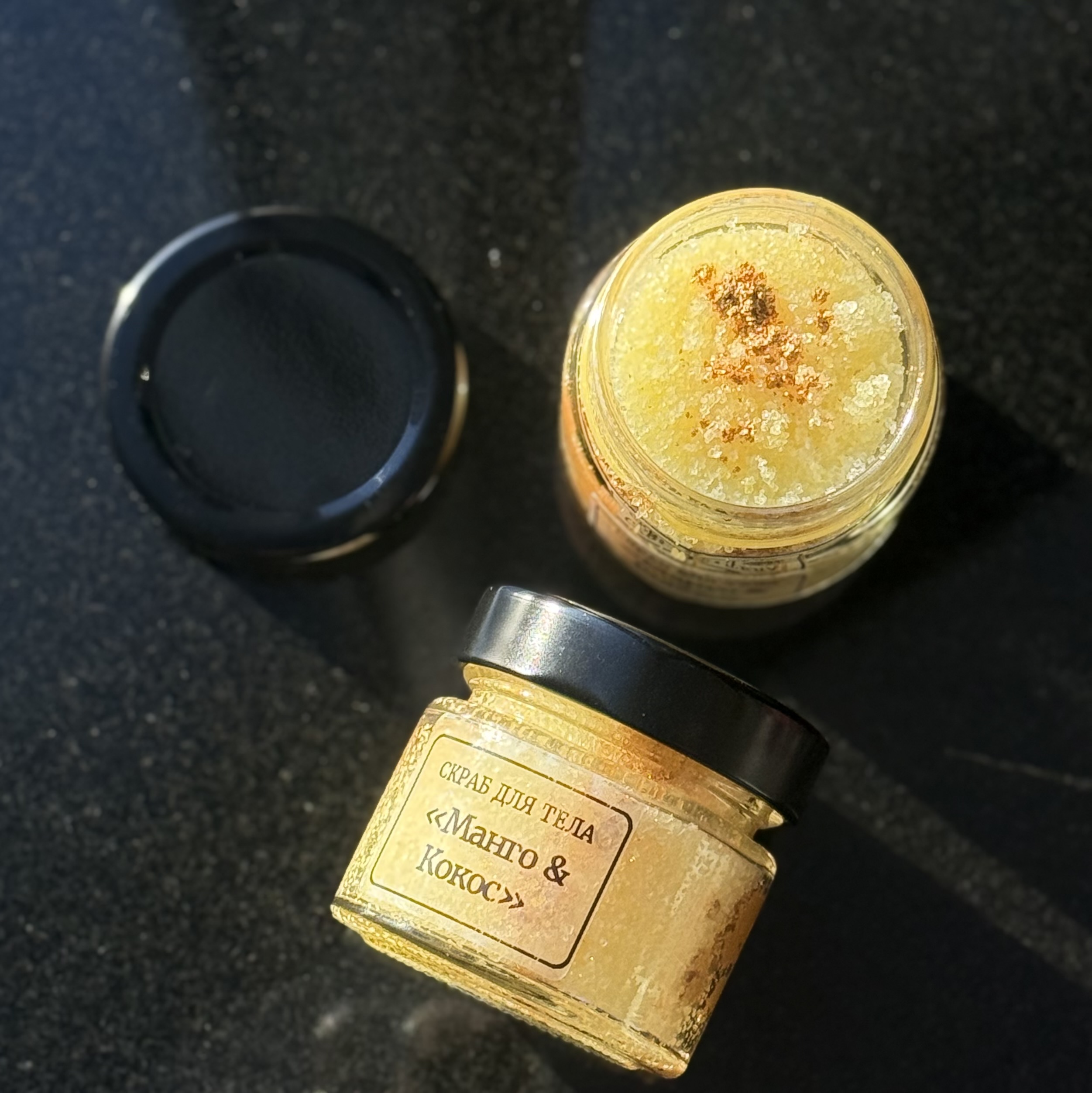 Состав: сахар, масло виноградной косточки, масло Ши, масло кокоса, цетеариловый спирт, эмульгатор Xyliance, аромамасло, токоферола ацетат (витамин Е), минеральный пигмент.